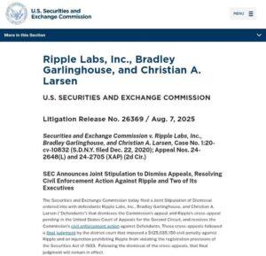 Ağustos ayında SEC ve Ripple, temyiz başvurularından karşılıklı olarak vazgeçerek yıllardır süren hukuki mücadeleyi sonlandırdı. Bu gelişme, XRP için belirsizlik döneminin kapanması anlamına gelirken, kripto projeleri için emsal niteliğinde bir karar olarak değerlendirildi. Piyasa, davanın bitmesini ABD’deki kripto regülasyonları açısından önemli bir rahatlama sinyali olarak gördü.