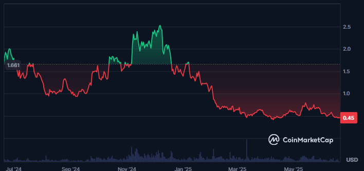 ARKM şu anda $0.4598, yıllık performansı -%75.43. Fiyat düşüklüğüne rağmen şeffaflık ve veri analitiği alanında liderliği sürdürüyor.