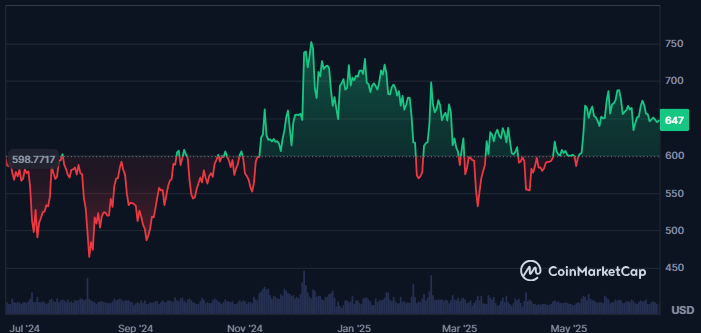 Güncel fiyatı $648.60, yıllık getirisi ise %8.11 (1y).