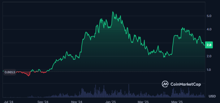 Şu an $2.84 seviyesinde işlem gören SUI’nin yıllık getirisi %216.63 (1y).
