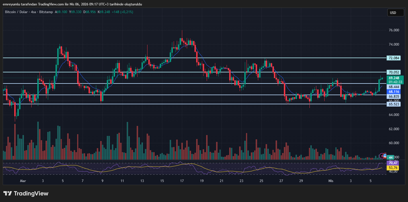 Ateşkes ihtimalinin güç kazanmasıyla birlikte Bitcoin fiyatı gece saatlerinde 69.000 dolar seviyesinin üzerine çıktı. Bu yükseliş, jeopolitik risklerin azalabileceğine yönelik beklentilerin kripto varlıklara kısa vadede destek verdiğini gösteriyor.