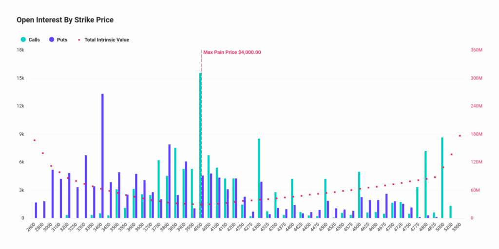 Ethereum tarafında maksimum ağrı seviyesi 4.000 dolar oldu. ETH, 4.629 dolar seviyesinde işlem gördü. Put-call oranı 1,02 olarak gerçekleşti. Bu oran, put pozisyonlarına hafif bir yönelim olduğunu ortaya koydu. Ethereum opsiyonlarının nominal değeri 1,33 milyar dolar, açık pozisyon sayısı ise 287.946 kontrat oldu.