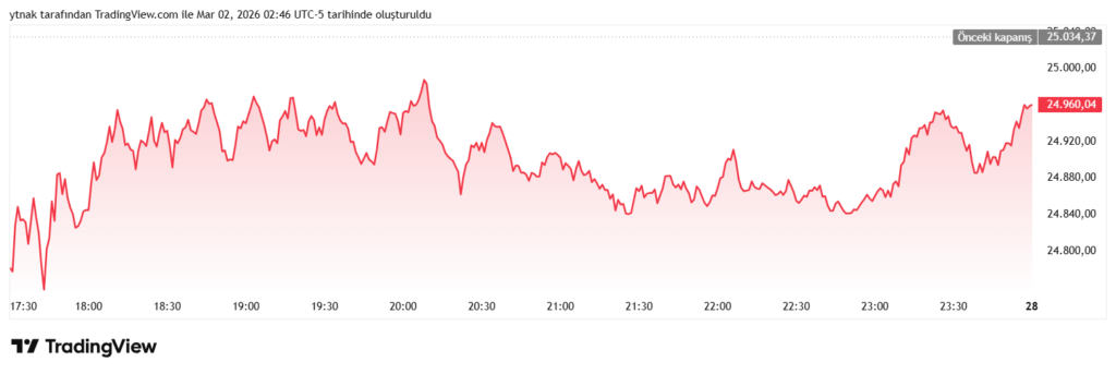 ABD ve İsrail’in hafta sonu İran’a yönelik operasyonu, petrol fiyatlarının hızla yükselmesi ve Ortadoğu’daki belirsizliğin yatırımcı endişelerini artırmasıyla hisse senedi vadeli işlemlerinde sert düşüş tetikledi. Dow, S&P ve Nasdaq vadeli işlemleri sabah seansında kayıplar yaşadı; yatırımcılar kısa vadeli riskten uzaklaşarak altına yöneldi.