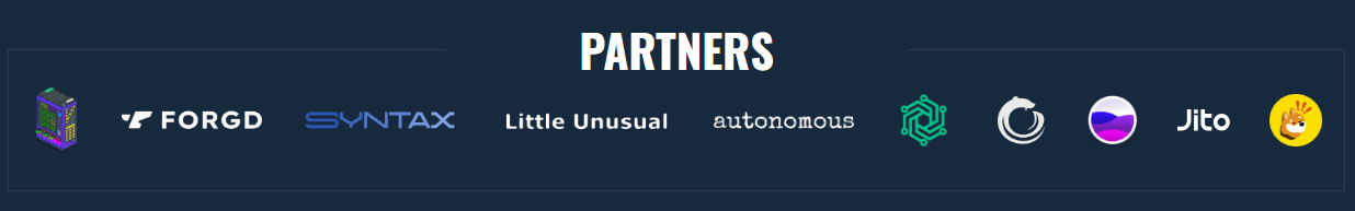 Adrena, Forgd, Syntax, Littleunusual, Autonomous, Jito, BONK, Overclock, Osec ve Triton gibi ortaklarla desteklenir.