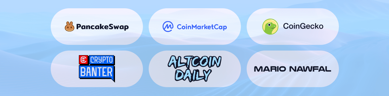 Ortaklar: PancakeSwap, CoinMarketCap, CoinGecko, Crypto Banter, Altcoin Daily, Mario Nawfal.