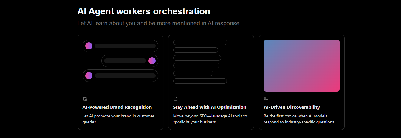 Platformun temel yaklaşımı, klasik SEO’nun ötesine geçerek doğrudan yapay zeka yanıtlarını etkilemektir. Bu sayede kullanıcıların ürün ve hizmet keşfi sürecinde markalar daha görünür hale gelir.