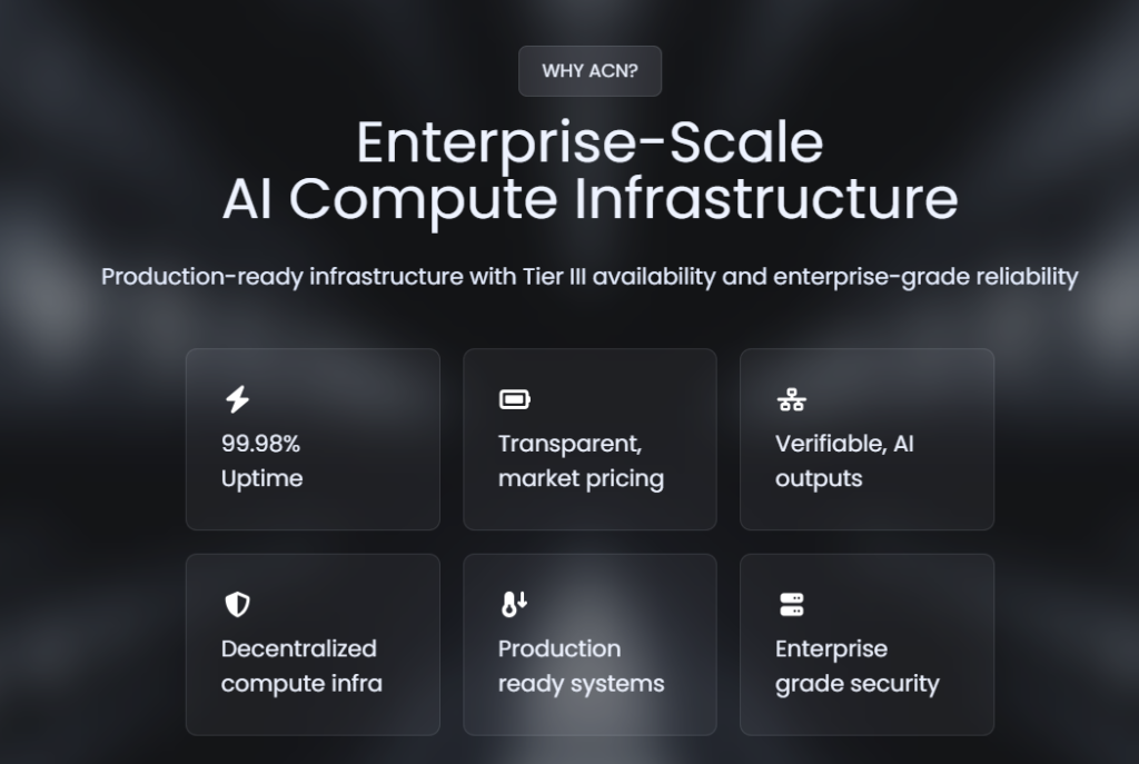 ACN’nin temel misyonu, yapay zeka altyapısını daha erişilebilir, ölçeklenebilir ve yönetilebilir hale getirmektir. Mevcut sistemlerde yüksek işlem gücüne erişim maliyetli ve karmaşıktır. ACN bu yapıyı sadeleştirmeyi hedefler.