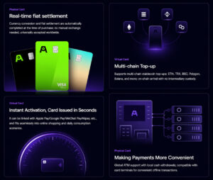 AP U-Card, kripto varlıkları gerçek dünyada harcanabilir hale getiren bir ödeme kartıdır. Visa ve MasterCard altyapısıyla çalışan bu sistem, kullanıcıların dijital varlıklarını doğrudan günlük hayatta kullanabilmesini sağlar. Bu sayede kripto paralar yalnızca yatırım aracı olmaktan çıkıp, pratik bir ödeme çözümüne dönüşür.