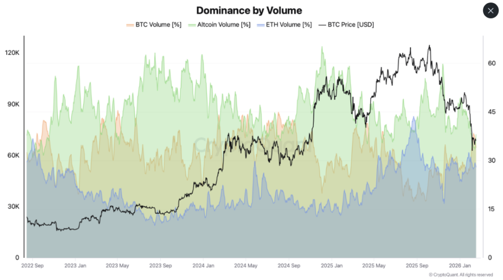 Piyasa stres altına girdiğinde Bitcoin’in işlem hacmi payının artması yeni bir durum değil. Ancak bu kez rotasyon daha belirgin ve daha hızlı gerçekleşti. Altcoin hacimlerindeki %50’ye yakın daralma, yatırımcıların önceliklerini yeniden düzenlediğini açık biçimde ortaya koyuyor.