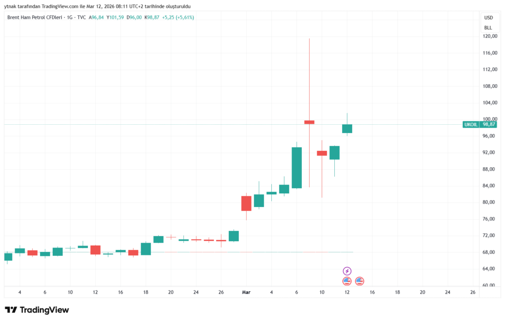 Enerji cephesinde ise tablo oldukça farklı. Orta Doğu’daki gerilim petrol piyasasında sert fiyat hareketlerini tetikledi. İran’ın bölgedeki saldırıları artırmasıyla birlikte petrol fiyatı yeniden varil başına 100 doların üzerine çıktı.