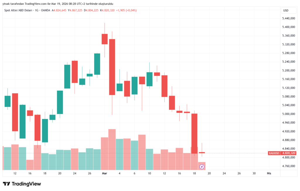 ABD’de açıklanan makroekonomik verilerin FOMC toplantısından daha şahin mesajlar çıkabileceği beklentisini artırması, altın fiyatları üzerinde sert bir baskı oluşturdu 7.000 TL kritik desteğinin altına sarkan gram altın, yeni günde zayıflayan doların desteğiyle kayıplarının bir kısmını telafi etmeye çalışıyor. Yatırımcılar “altın yükseldi mi, düştü mü?” sorusuna yanıt ararken, spot piyasada ons altının 4.850 dolar seviyelerindeki dengelenme çabası dikkat çekiyor.