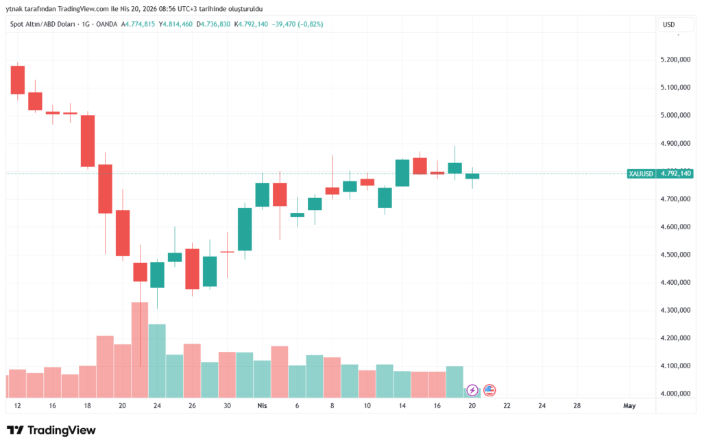 Spot altın ons başına 4.792 dolar seviyesine kadar geriledi. Gün içinde %0,7’lik düşüş dikkat çekti. ABD vadeli altın kontratları ise %1,3 kayıpla 4.813 dolar seviyesine indi. Bu geri çekilme, 13 Nisan’dan bu yana görülen en düşük seviyelere işaret ediyor.