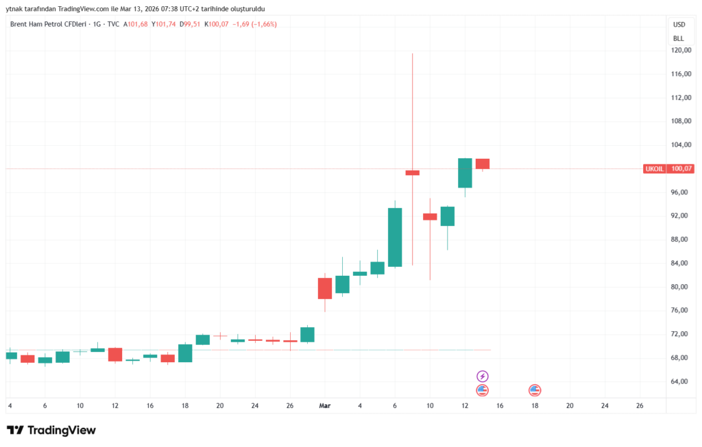 Enerji tarafında ise küçük bir geri çekilme oldu. ABD’nin, denizde mahsur kalan Rus petrol ve petrol ürünlerinin satın alınmasına yönelik ülkelere 30 günlük lisans vermesi fiyatları bir miktar rahatlattı. Buna rağmen Brent petrol yaklaşık 99,8 dolar, ABD ham petrolü ise 95 dolar civarında kalmayı sürdürüyor.