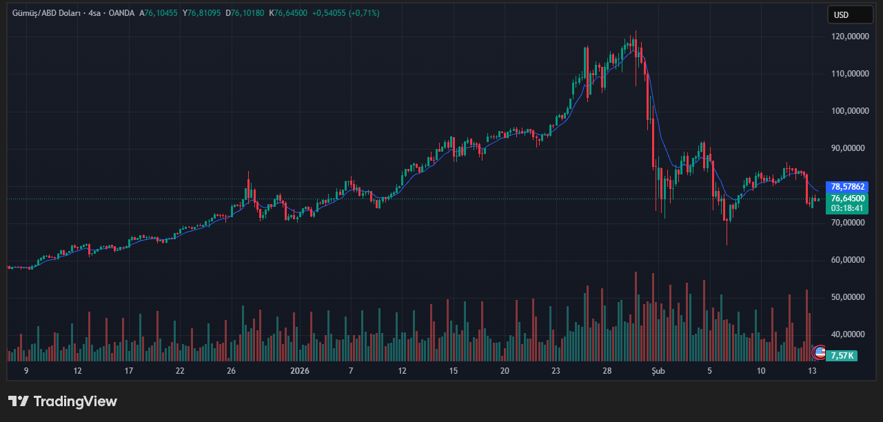 Gümüş fiyatı gün içinde yüzde 10’u aşan sert bir geri çekilme yaşayarak 76,68 dolar seviyesine geriledi. Bu ölçekte bir günlük düşüş, son dönemde artan volatilitenin en net göstergelerinden biri olarak öne çıkıyor.