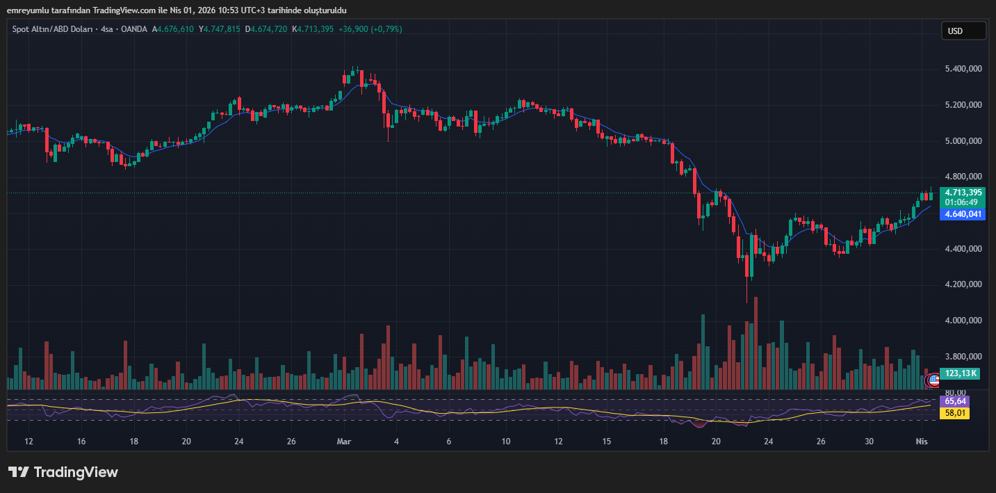 Anlık olarak fiyat 4.713 dolara erişerek toparlanma momentumunun sürdüğünü kanıtladı.