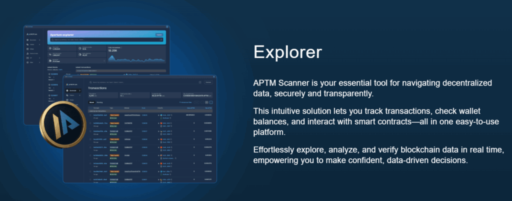- Apertum Scanner: Kullanıcıların işlemleri takip etmesini, cüzdan bakiyelerini kontrol etmesini ve akıllı sözleşmelerle etkileşimde bulunmasını sağlayan bir araçtır.