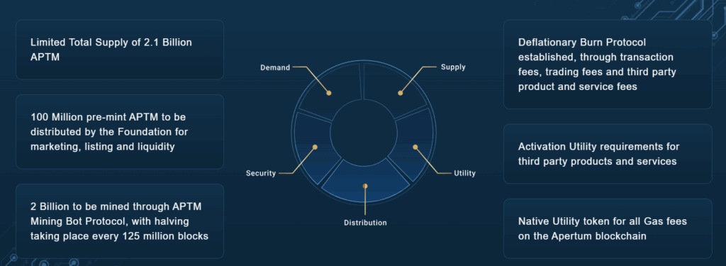 Madencilikle Kazanılan Arz: 2 milyar APTM, sanal madencilik protokolü aracılığıyla çıkarılacaktır. Ödüller her 125 milyon blokta bir yarıya düşürülür (yaklaşık 4 yılda bir). İlk 125 milyon blokta, toplam arzın %50’si çıkarılacaktır.