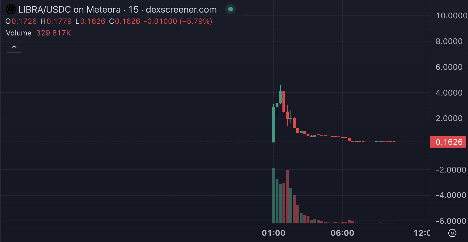 Arjantin Başkanının paylaşımının ardından birçok kripto yatırımcısı LIBRA coine ilgi gösterdi. Duyurunun ardından LIBRA 4,7 dolara kadar yükseldi. Ancak tweet’in silinmesi ve Başkanın desteğini geri çekmesiyle birlikte LIBRA coin çakılarak 0,16 dolara kadar geriledi.
