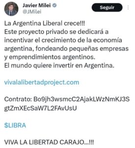 LIBRA, Şubat ayında Solana ağında piyasaya sürüldü ve Başkan Milei’nin paylaşımının ardından kısa süreli bir fiyat artışı yaşadı. Ancak birkaç saat içinde token çakıldı. Milei daha sonra paylaşımını silerek, “Projenin ayrıntılarından haberdar edilmedim. Bilgi edindikten sonra tanıtımını sürdürmeme kararı aldım.” ifadelerini kullandı.