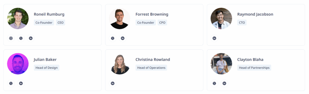 - Roneil Rumburg: Blok zinciri ve yapay zeka alanında deneyimli, Bitcoin ödeme çözümlerinde görev almış bir bilgisayar programcısı. Kripto ekosisteminde önde gelen yatırımcı ve girişimcidir.