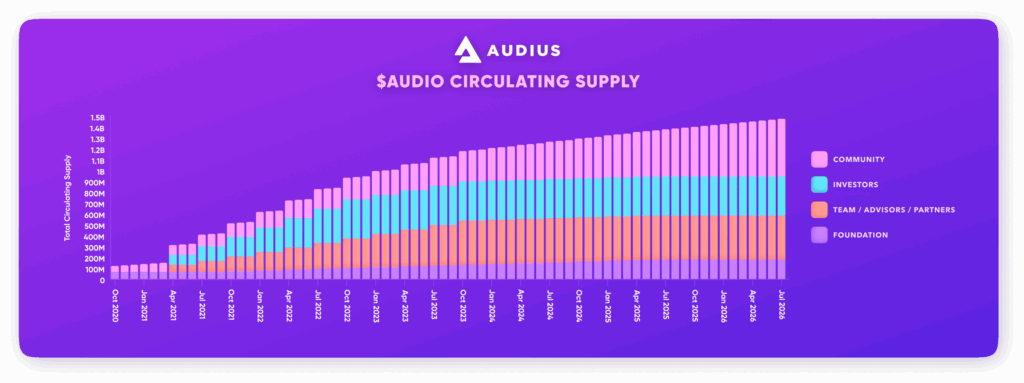 AUDIO token, toplam 1.34 milyar arz ile Ethereum üzerinde ERC-20 standardında oluşturulmuştur. Maksimum arz sınırı bulunmamaktadır.