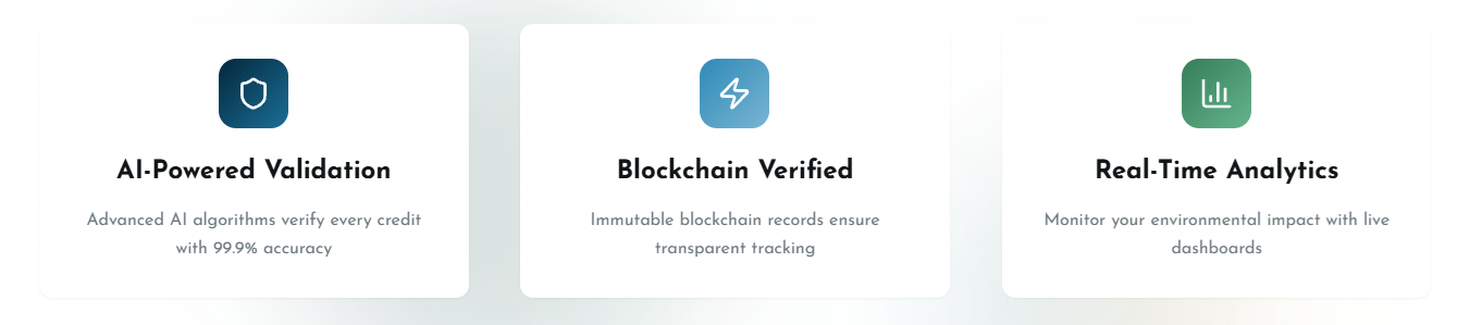 Platformda kullanılan gelişmiş yapay zekâ algoritmaları, iklim kredilerini %99,9 doğruluk oranıyla doğrular. Bu sayede sahte, mükerrer veya düşük kaliteli kredilerin sisteme girmesi engellenir.