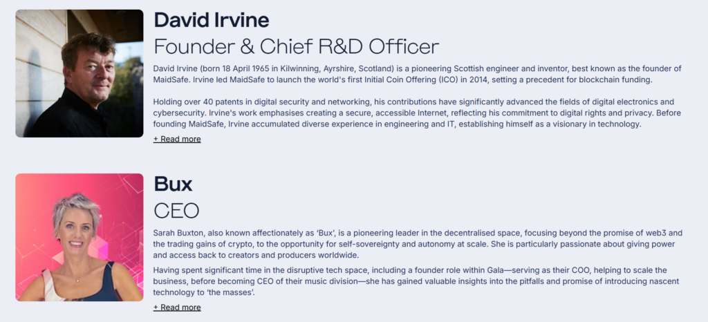 Kurucu mühendis David Irvine, merkezi sunuculara dayanmayan bir internet fikriyle yola çıktı ve bu vizyonu hayata geçirmek için MaidSafe’i kurdu. Irvine, dijital güvenlik ve ağ mimarisi alanında 40’tan fazla patente sahip.