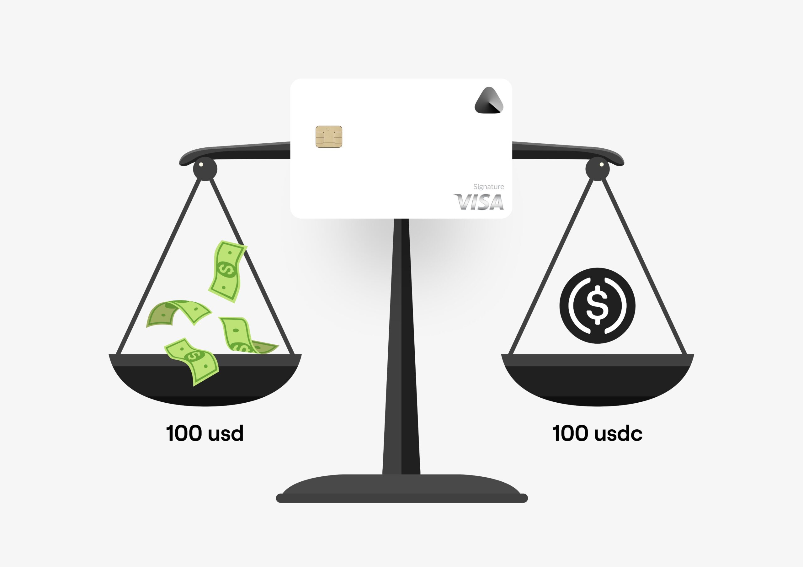 Kullanıcı kartına USDC yatırdığında, akıllı sözleşmede bir teminat oluşuyor ve kart bunun karşılığında USD kredi limiti sağlıyor. Harcama yapılınca akıllı sözleşmeden karşılık gelen miktar otomatik olarak Visa’ya aktarılıyor.