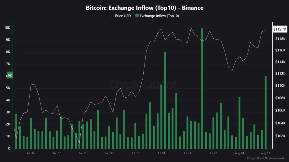 Son günlerde Bitcoin balinaları büyük hareketlilik gösterdi. CryptoQuant verilerine göre, yaklaşık 6.060 BTC Binance’e aktarıldı. Bu miktar, piyasa değeriyle yaklaşık 722 milyon dolara eşdeğer. Balinalar, ekonomik veriler öncesinde pozisyonlarını güçlendirdi.