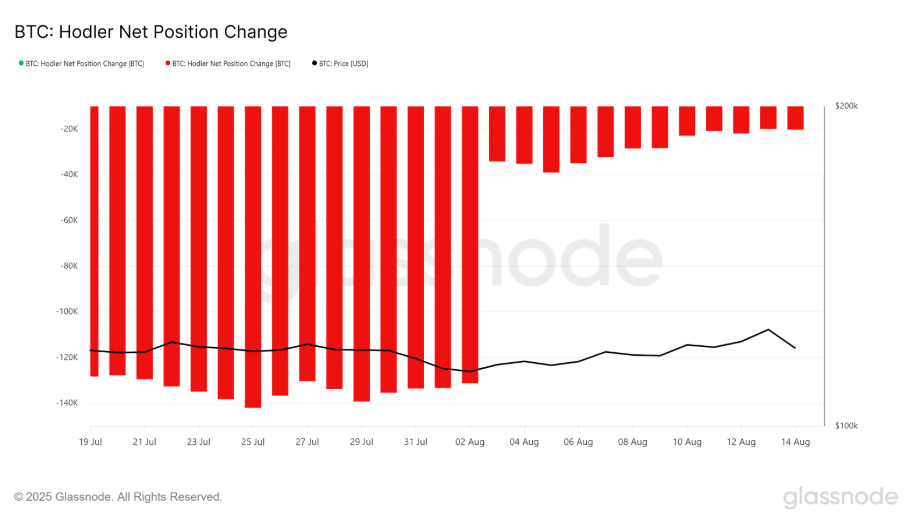 Bitcoin, son 24 saatte %3,5 değer kaybetmeden önce 124.474 dolarla yeni ATH’ye ulaştı. Bu düşüş, balinaların pozisyonlarını değiştirdiğini gösteriyor. Ancak uzun vadeli yatırımcılar güçlü şekilde tutunuyor. HODLer Net Pozisyon Değişimi göstergesi, satış baskısının azaldığını işaret ediyor. Bu durum, Bitcoin’in fiyat istikrarını ve toparlanma potansiyelini destekliyor.
