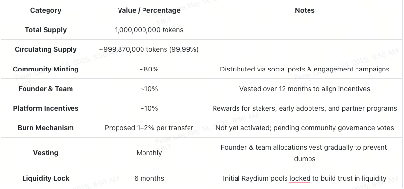 • Platform Teşvikleri: Yaklaşık %10 — stake eden kullanıcılar, erken katılımcılar ve iş birlikleri için ayrıldı.
