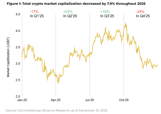 Dünyanın en büyük kripto para borsalarından Binance, 2025 yılı raporunu ve 2026’da trend olabilecek başlıkları açıkladı. Kripto para piyasaları için 2025 yılı, çelişkilerle dolu bir dönemi temsil ediyor. Bir yandan toplam piyasa değeri ilk kez 4 trilyon dolar seviyesini aşarken, Bitcoin yeni zirveler gördü ve kurumsal katılım belirgin şekilde arttı. Öte yandan makroekonomik belirsizlikler, regülasyon süreçlerindeki gecikmeler ve küresel risk iştahındaki dalgalanmalar, piyasaların yılı sınırlı bir performansla kapatmasına neden oldu.
