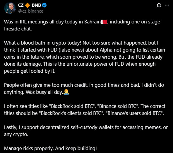 CZ, ayrıca medyada sıkça gördüğü “Binance BTC sattı” başlıklarının yanlış olduğunu, doğru ifadenin “Binance kullanıcıları BTC sattı” olması gerektiğini belirterek piyasa yanlış algılarına dikkat çekti.