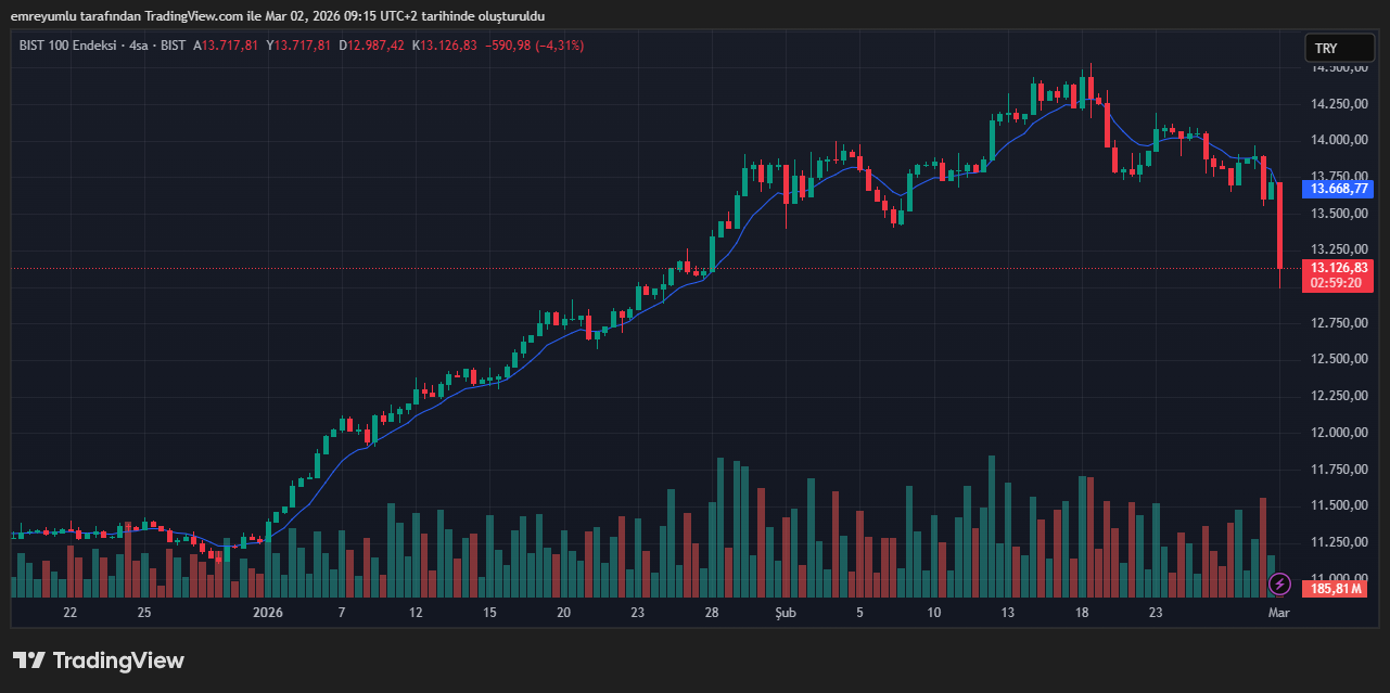 Endeks, kısa süre önce 14.500 puan seviyelerinde tüm zamanların en yüksek değerine ulaşarak önemli bir psikolojik eşiği geride bırakmıştı. Ancak ABD/İsrail-İran hattında yükselen gerilim, riskli varlıklarda satış baskısını beraberinde getirdi. Bu gelişmelerin ardından BIST 100’de hızlı bir geri çekilme yaşandı ve endeks 13.200 puan seviyelerine kadar geriledi.