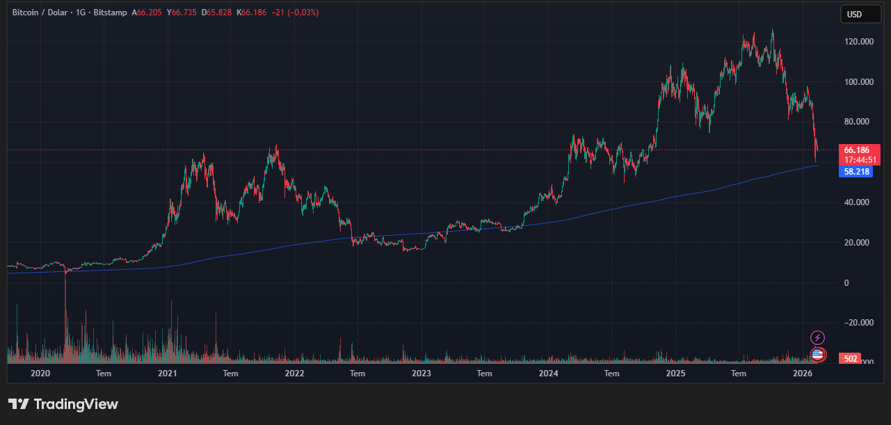 Bitcoin’in geçmiş döngülerine bakıldığında, 200 haftalık basit hareketli ortalamanın (200-week SMA) ayı piyasalarından çıkışta belirleyici rol oynadığı görülüyor. 2015 ve 2018 diplerinde fiyat bu ortalama çevresinde taban oluşturduktan sonra çok yıllı yükseliş trendlerine girmişti.