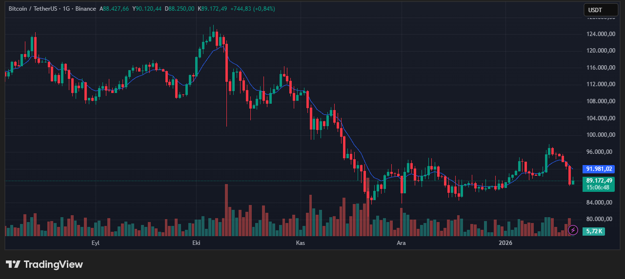 Bitcoin fiyatı salı günü yüzde 4’e varan ek kayıplar yaşayarak Coinbase verilerine göre 87.790 dolar seviyesine kadar düştü. Bu seviye, Aralık ayı sonundan bu yana görülen en düşük fiyat olarak öne çıkıyor.