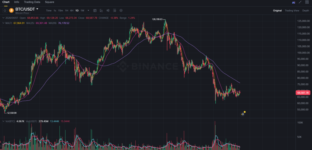 Bitcoin fiyatı Mart ayının başından bu yana 65 bin ila 75 bin dolar arasında sıkışmış durumda. Stockton’a göre mevcut hareket, 58 000–59 000 dolar aralığında birden fazla retest gösterebilir. Teknik göstergeler henüz güçlü bir dip sinyali vermiyor; aşırı satım dönüşleri veya piyasa genişliği uçları gözlenmiyor.