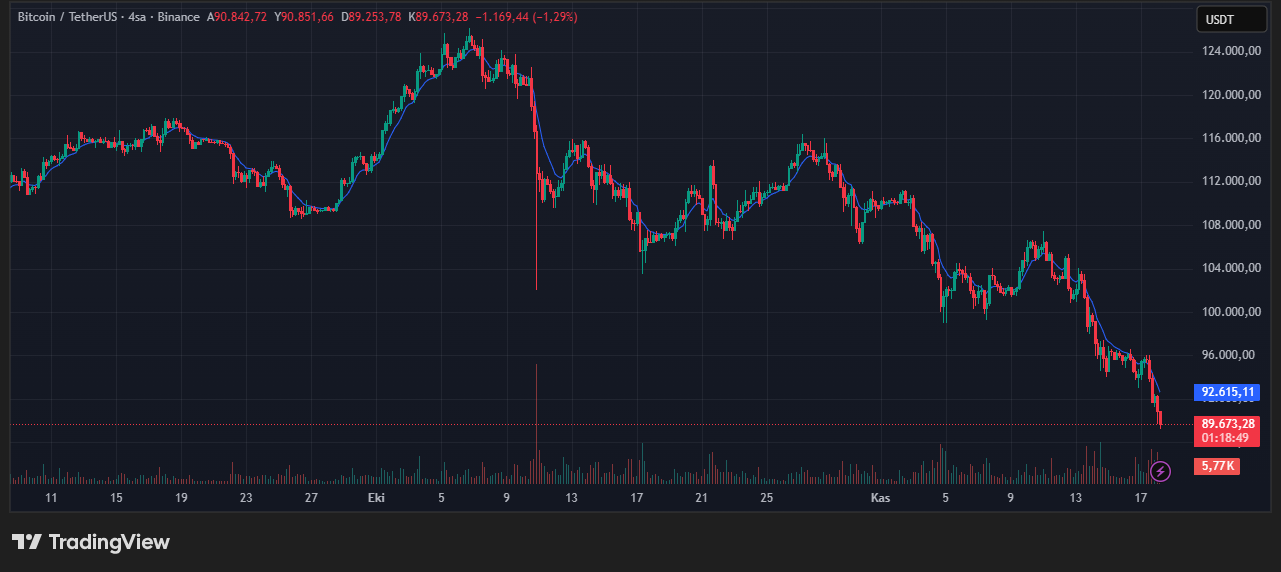 Bitcoin şu anda yaklaşık 90.700 dolar seviyesinde işlem görüyor ve 6 Ekim’de kaydedilen 126.000 doların üzerindeki tüm zamanların zirvesinden %28 geride.