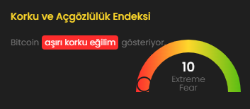 Son 24 saatte kripto piyasasında toplam 619 milyon dolarlık tasfiye gerçekleşirken, bunun 243 milyon doları Bitcoin pozisyonlarından geldi. Korku & Açgözlülük Endeksi’nin 10 seviyesine düşmesi ise piyasanın “aşırı korku” bölgesine geçtiğini gösteriyor.