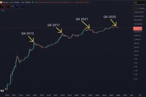 Tarihsel veriler incelendiğinde Bitcoin’in büyük piyasa döngülerinde çoğunlukla dördüncü çeyreklerde zirve oluşturduğu dikkat çekiyor. 2013, 2017, 2021 ve son olarak 2025 döngülerinde benzer bir fiyat davranışı ortaya çıktı; bu dönemlerin her birinde güçlü yükselişlerin ardından uzun soluklu ve kademeli düşüş süreçleri yaşandı. Bu yapı, Bitcoin piyasasında tekrar eden bir döngüsel modelin varlığına işaret ediyor.
