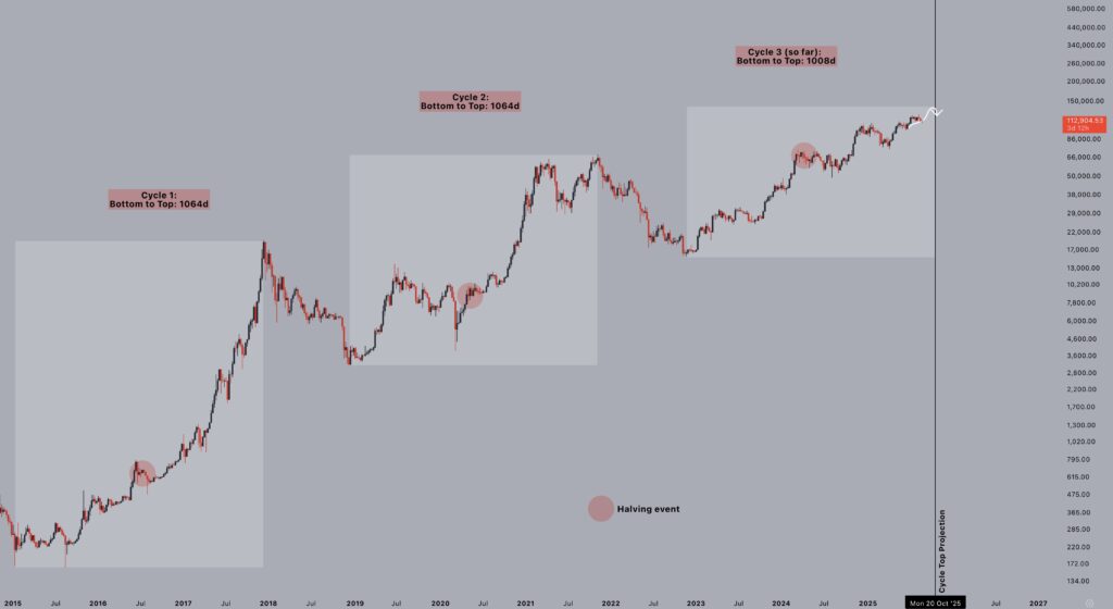 Bitcoin piyasasında yükselişin süresine dair tartışmalar hız kazandı. Analistler, tarihsel döngüler ışığında ekim ayını olası zirve dönemi olarak görüyor. Bu görüş, Bitcoin’in geçmişte 1.060 günlük boğa döngüleri yaşamasıyla destekleniyor.