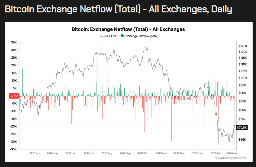 “BTC netflow’un uzun süre negatif kalması, spot piyasadaki potansiyel satış baskısının azaldığını gösterir.”