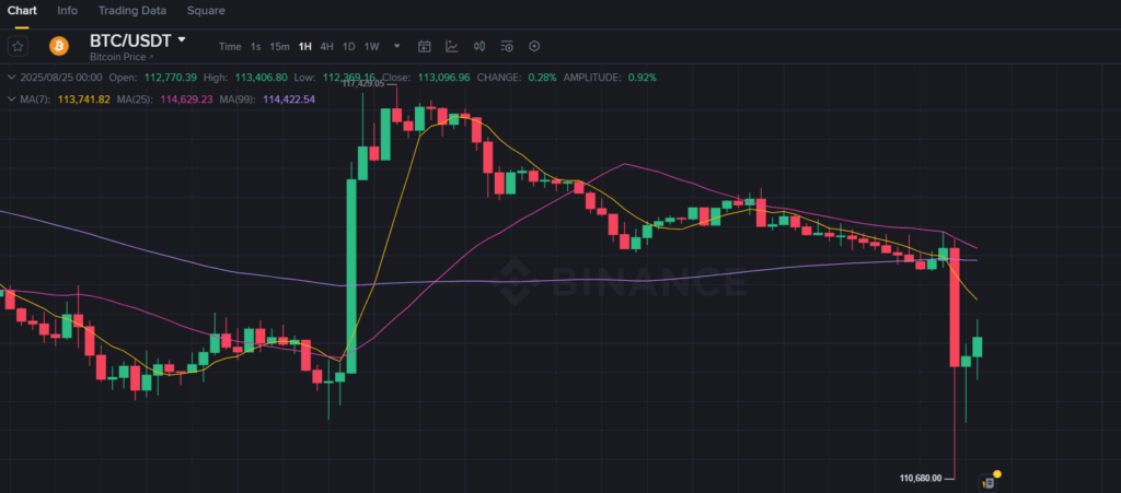 Bitcoin (BTC), yalnızca bir saatte 114.917 dolardan 110.680 dolara gerileyerek piyasada büyük bir volatilite yarattı. Şu anda ise 113.000 dolardan işlem gören BTC’deki bu sert hareket, teknik seviyelerdeki kırılmalar ve likidasyon dalgalarıyla ilişkilendiriliyor. Henüz düşüşü açıklayabilecek net herhangi bir haber veya duyuru bulunmuyor, ancak piyasa gözlemcileri yatırımcıları dikkatli olmaya çağırıyor.