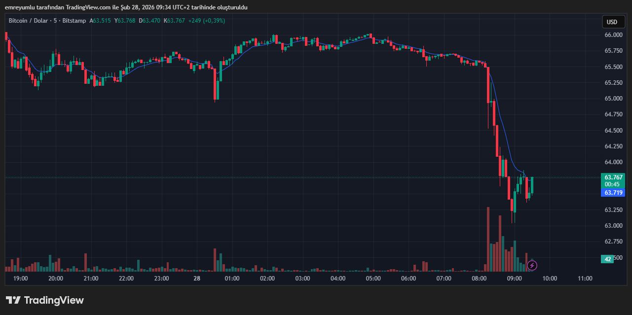 ABD ve İsrail’in İran’a yönelik askeri operasyon başlatmasının ardından küresel piyasalarda risk algısı hızla yükseldi. Bu gelişmelerin hemen ardından Bitcoin fiyatı hafta sonu işlemlerinde yaklaşık %3 gerileyerek 63.000 dolar seviyesine yaklaştı. Böylece lider kripto varlık, 5 Şubat’taki sert düşüşten bu yana görülen en düşük seviyelere yeniden yaklaşmış oldu. Hatırlanacağı üzere o tarihte fiyat kısa süreliğine 60.000 doların altını test etmişti.