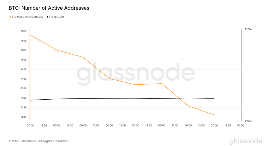 Glassnode verilerine göre, Bitcoin ağında aktif benzersiz adres sayısı da düşüş kaydetti. Son yedi günde sürekli azalan adres sayısı, pazardaki durgunluğun ve zayıf talebin sinyalini veriyor. Dünkü kapanışta aktif adres sayısı 721.086 olarak haftalık dip yaptı. Kurumsal yatırımcılardan çıkan sermaye ile bireysel yatırımcıların işlem aktivitesindeki azalma bir arada değerlendirildiğinde, BTC fiyatında kısa vadeli bir geri çekilme ihtimali güçleniyor.
