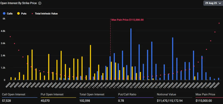 Bitcoin opsiyonlarının toplam değeri 11,47 milyar dolar seviyesinde. Açık pozisyon sayısı 102.598 olarak kaydedildi. Put-to-Call oranı 0,78 çıkarken, bu durum piyasanın temkinli ama iyimser olduğunu gösteriyor. Ayrıca, maksimum acı seviyesi 115.000 dolarda yer alıyor. Bu seviye, opsiyon sahiplerinin en fazla zararı yaşayacağı noktayı temsil ediyor.