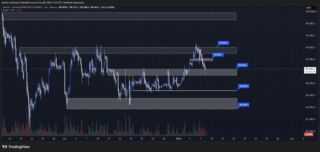 BTC 90.000 dolarlık kritik destek bölgesine gelmesi, fiyatın 89.200 dolara kadar sarkabileceğini gösteriyor. Eğer bu bölge kırılırsa, fiyat 86.800 dolara kadar geri çekilebilir ve momentum kaybı derinleşebilir. Bu teknik görünüm, piyasadaki kısa vadeli oynaklığı ve riskleri ortaya koyuyor.