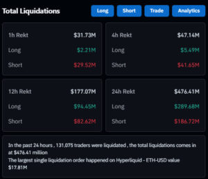 Likidasyon Verileri: Son 24 Saatte 476 Milyon Dolar Uçtu