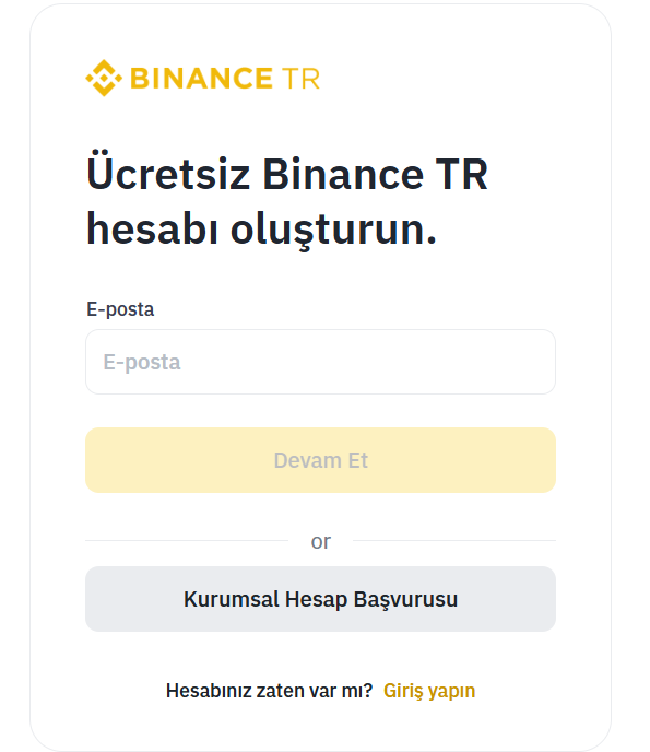 Binance TR sitesine ya da uygulamasına gidin. E-posta veya telefon numaranızla kayıt olun. Şifre seçerken karmaşık, tahmin edilmesi zor bir şifre kullanın. Kayıt sırasında size e-posta veya SMS ile doğrulama kodu gelir; o kodu girin. Hesap açma işlemi bu kadar basit.