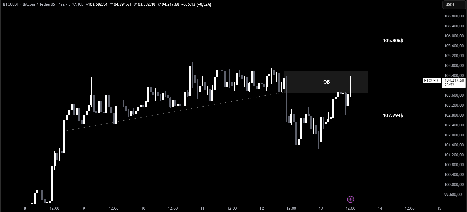 Ancak her şey beklendiği gibi gitmeyebilir. Eğer BTC, bu bölgeden sert bir ret hareketi alırsa, geri çekilmenin ilk hedefi olarak 102.794$ destek seviyesi izlenmeli. Bu seviyenin altına sarkılması, daha derin düzeltmeleri tetikleyebilir.